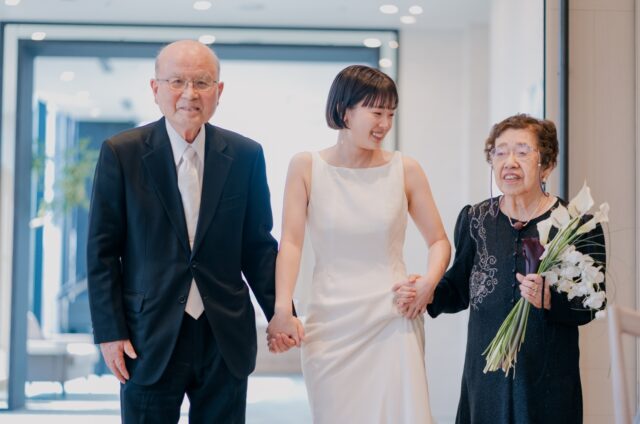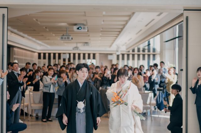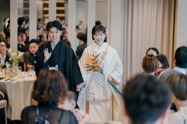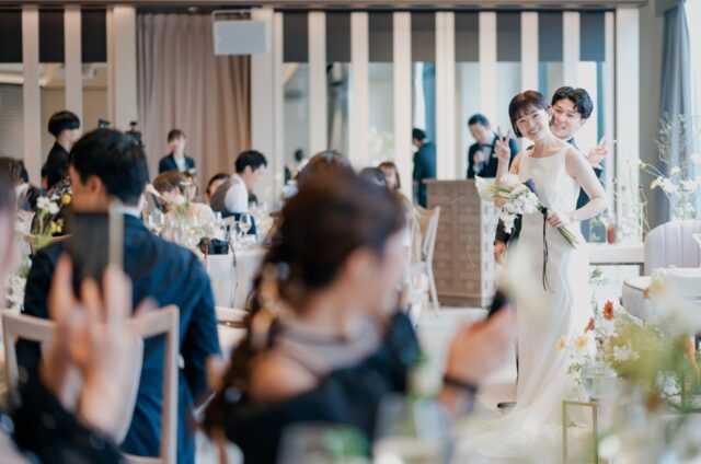 今まで支えてきてくれた方たちに、どうにかして感謝を伝えたいと思い続けながら当日まで考えてきました。当日は緊張もありましたが、友人の温かい眼差しや両親が涙を目に浮かべる姿などを目の当たりにし、自分たちがどれだけ愛情を注がれてきたのかを実感出来ました。披露宴の結びの前には新郎新婦から両親への手紙を読む機会もいただき、今までの想いと感謝を伝えると共にふたりらしさもゲストのみなさまに表現できだと思います。ここで結婚式を挙げる決断をした自分たちを讃えたいと思うほどに、素晴らしい日を過ごすことができました。